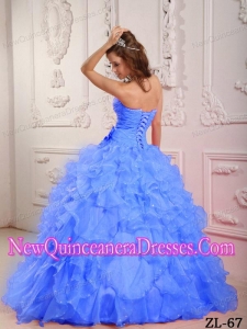 Romantic Ball Gown Sweetheart Organza Beading Custom Made Quinceanera Dresses in Blue