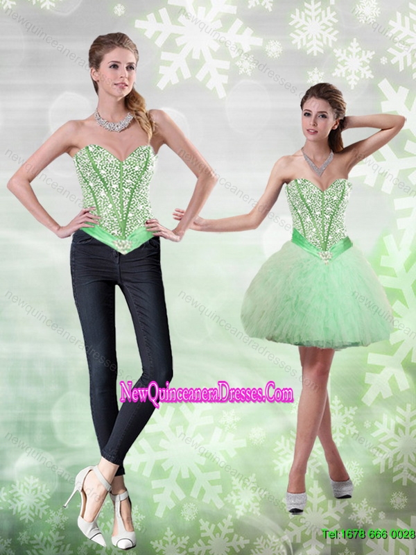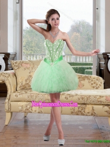 Romantic Beading and Ruffles Apple Green Dama Dresses for 2015