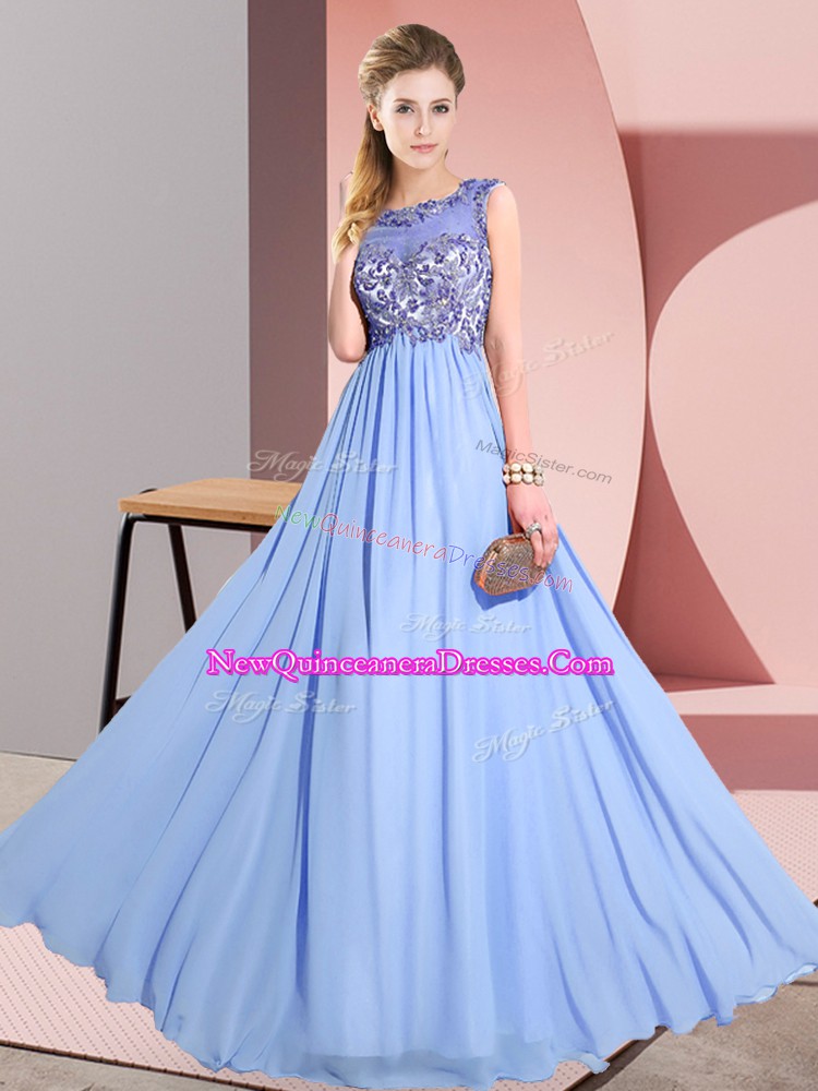 Romantic Lavender Scoop Neckline Beading and Appliques Quinceanera Court Dresses Sleeveless Backless
