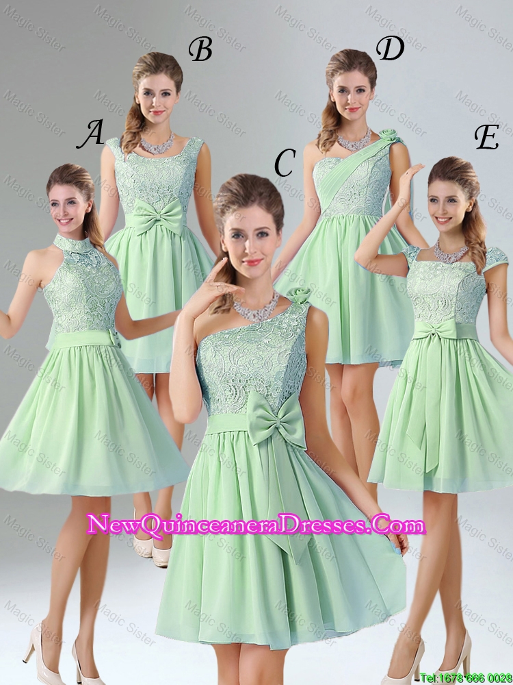 2015 mint dama dresses for bridesmaids, Romantic Short Dama Dresses with Hand Made Flower for Wedding