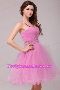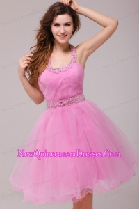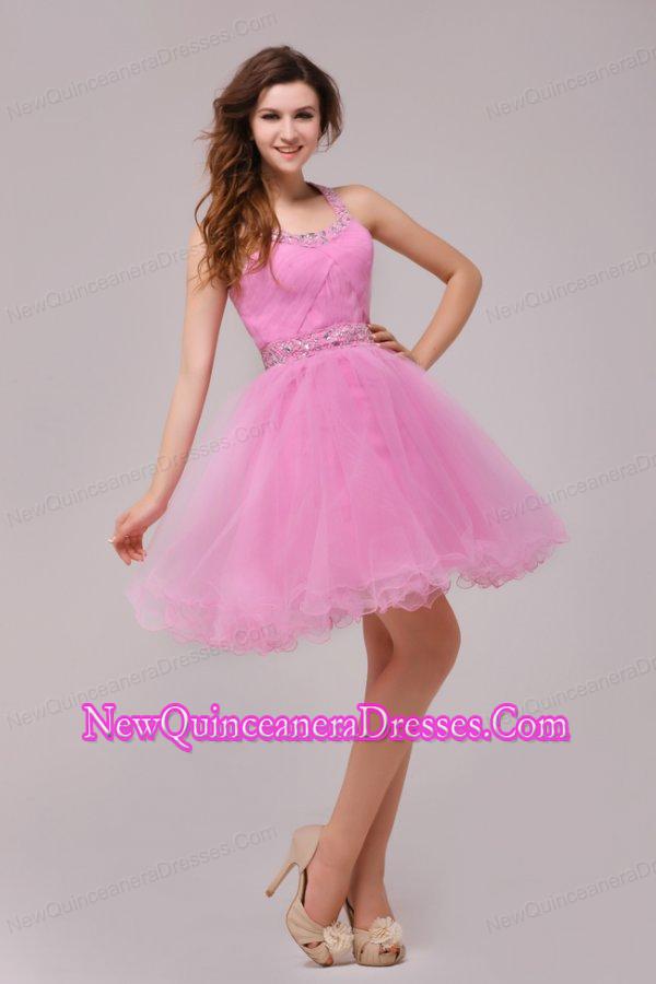 Rose Pink Halter Top Beading and Ruching Dresses for Dama