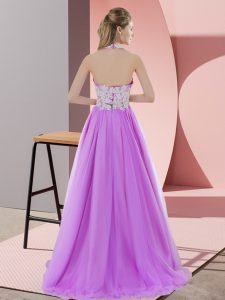 Beautiful High-neck Sleeveless Lace Up Beading and Ruffles Kids Formal Wear in Royal Blue