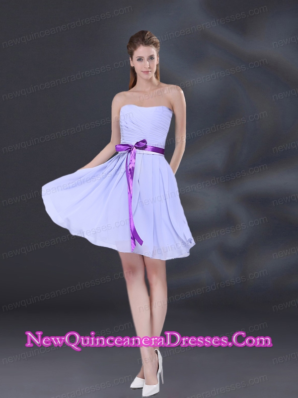 Ruching and Belt Chiffon Dama Dresses in Lavender
