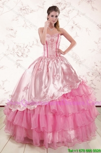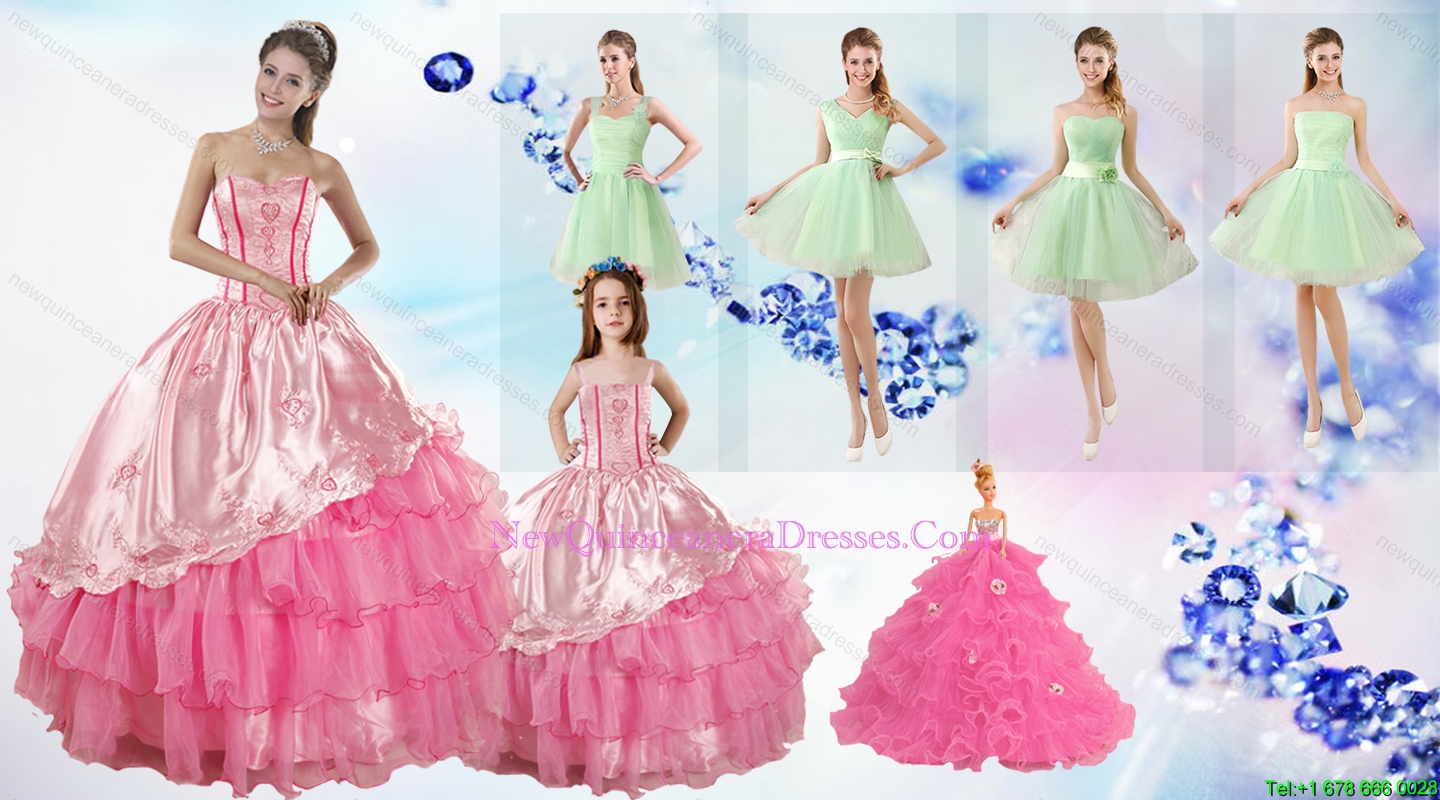 Ruffled Layers Sweetheart Quinceanera Dress and Ruching Apple Green Dama Dresses and Rose Pink Little Girl Dress