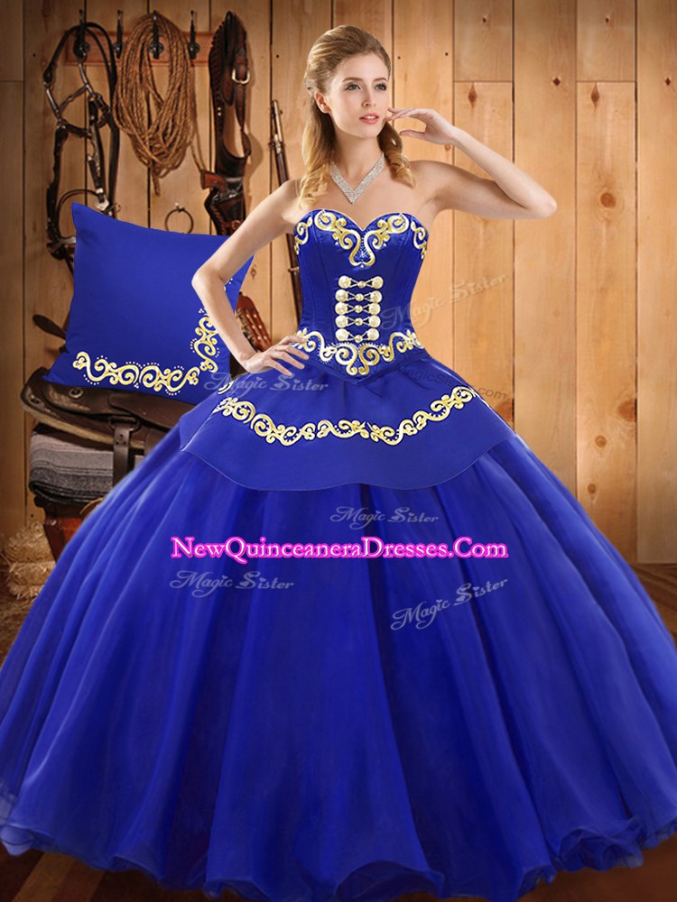 Ruffles Quinceanera Gown Blue Lace Up Sleeveless Floor Length