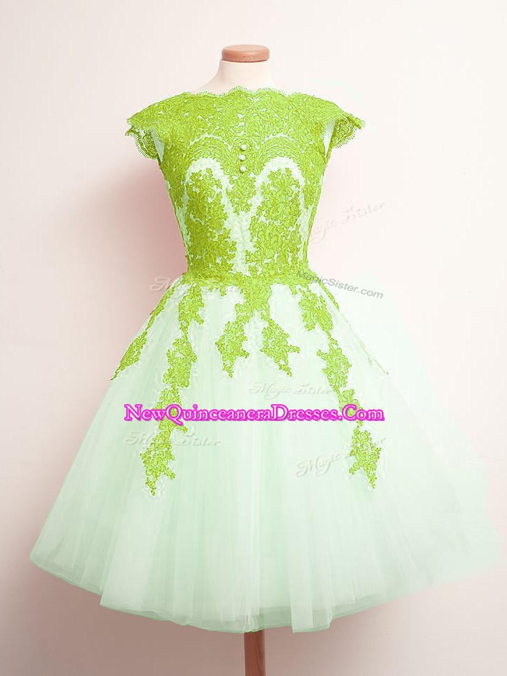 Knee Length Lace Up Quinceanera Dama Dress for Prom and Party with Lace and Belt