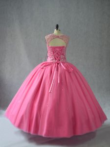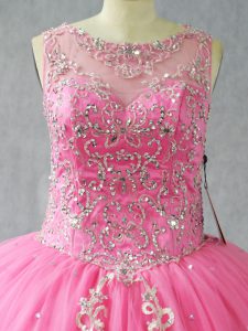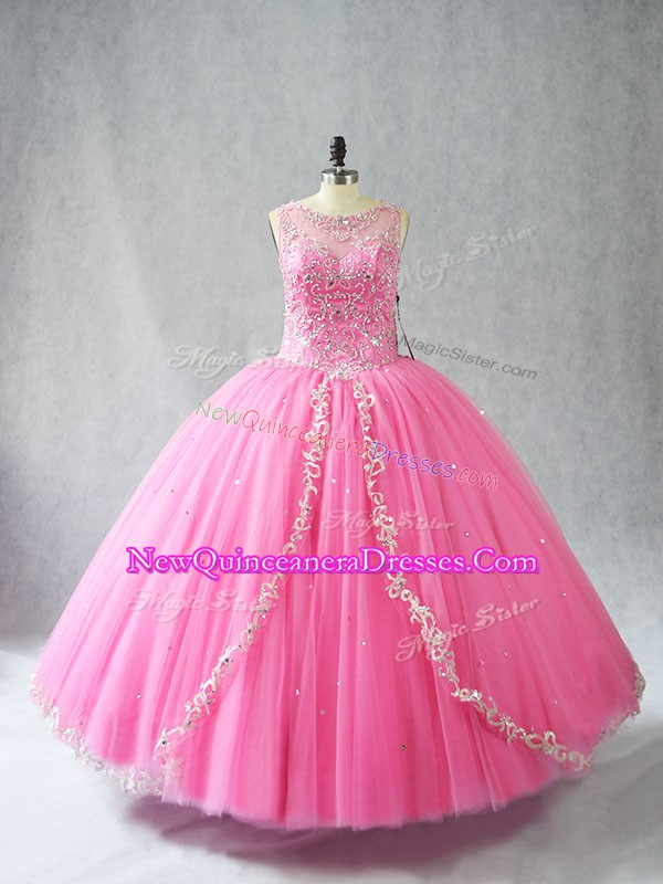 Scoop Sleeveless Tulle Sweet 16 Dresses Beading and Appliques Lace Up