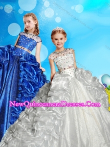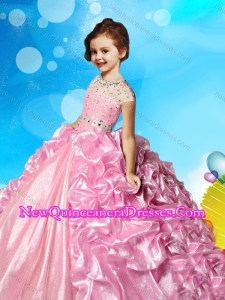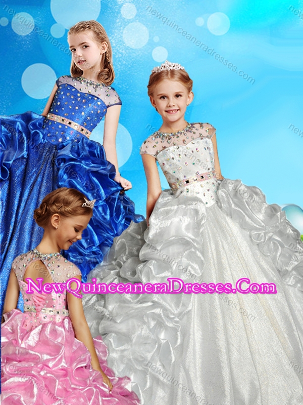 See Through High Neck Beaded Cute Little Girl Pageant Dress with Cap Sleeves