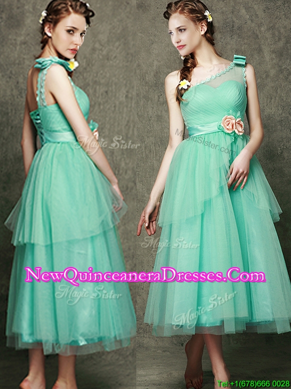 , See Through One Shoulder Dama Dress with Bowknot and Hand Made Flowers