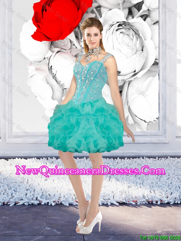 new arrivals discount damas dresses with lace, Sexy Ball Gown Beaded Dama Dresses with Straps in Turquoise