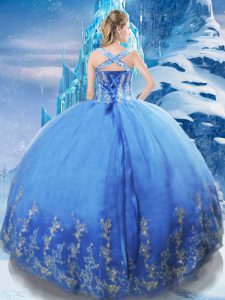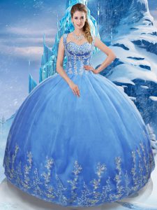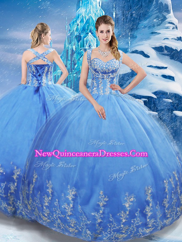 Shining Appliques Quinceanera Gown Blue Lace Up Sleeveless Floor Length