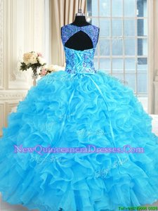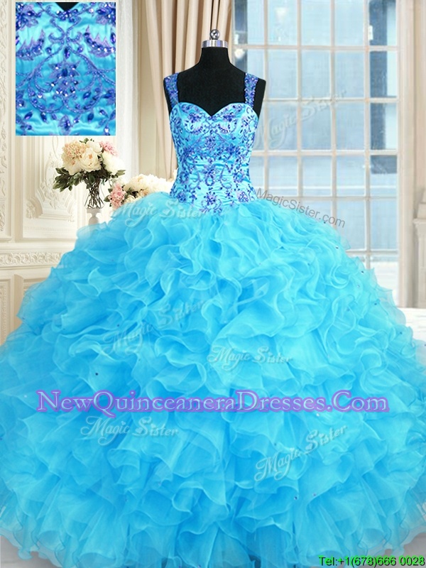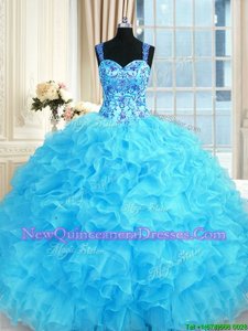 Shining Ball Gowns Sweet 16 Quinceanera Dress Baby Blue Straps Organza Sleeveless Floor Length Lace Up