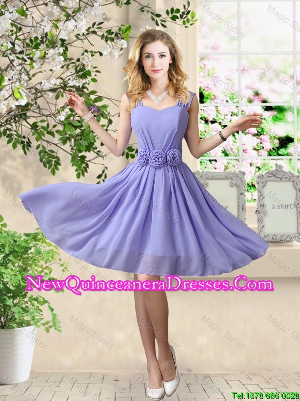 Simple 2016 Straps Hand Made Flowers Dama Dresses