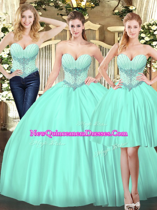 Simple Apple Green Sleeveless Floor Length Beading Lace Up 15th Birthday Dress