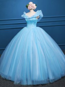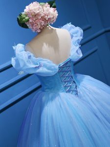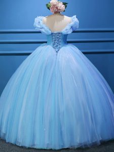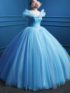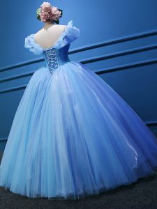 Simple Floor Length Baby Blue Quince Ball Gowns Off The Shoulder Sleeveless Zipper