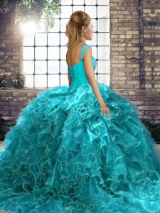 Sleeveless Lace Up Floor Length Beading and Ruffles Child Pageant Dress