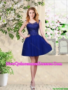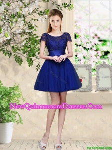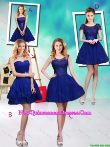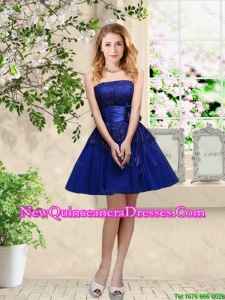 Simple Sweetheart Royal Blue Dama Dresses with Belt