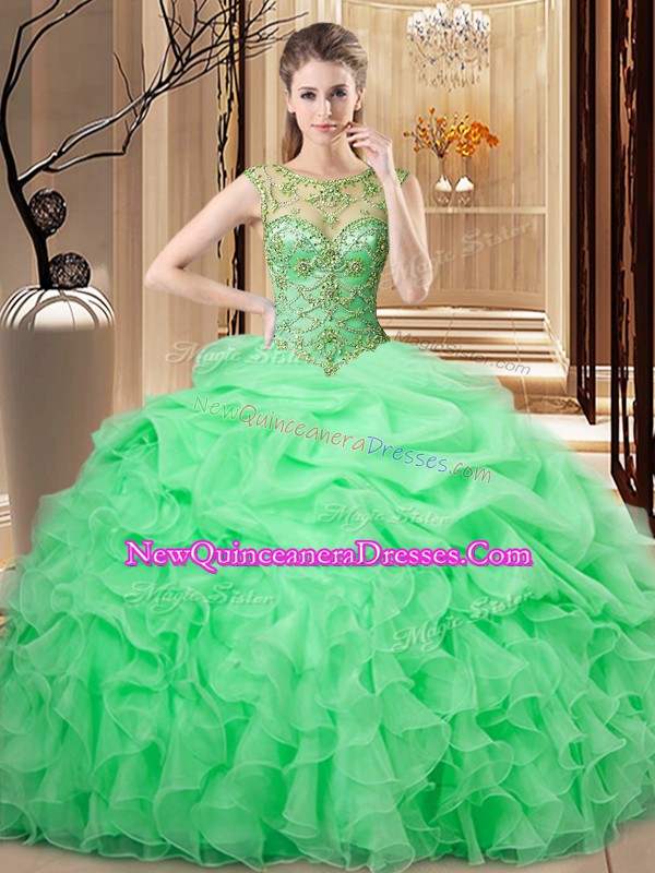 Sleeveless Beading and Ruffles and Pick Ups Lace Up Vestidos de Quinceanera