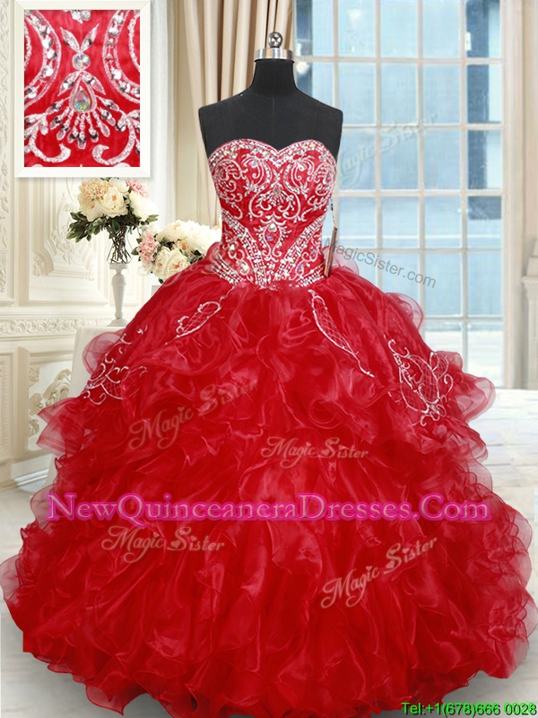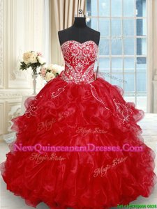 Fashionable Multi-color Lace Up Sweetheart Beading and Ruffles Quinceanera Gowns Organza Sleeveless