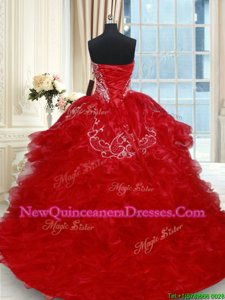 Sleeveless Brush Train Beading and Embroidery and Ruffled Layers Lace Up Quince Ball Gowns