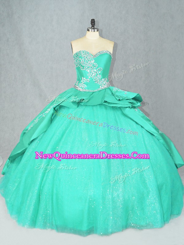 $ 384.43Sleeveless Court Train Embroidery Lace Up Quinceanera Gowns