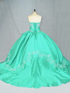 Sleeveless Court Train Embroidery Lace Up Quinceanera Gowns
