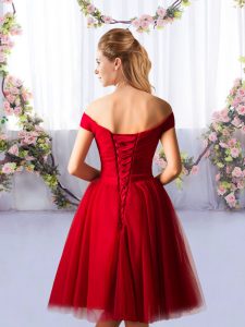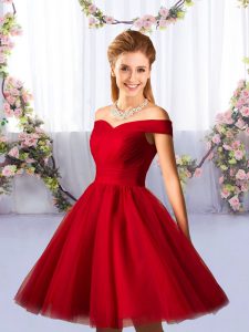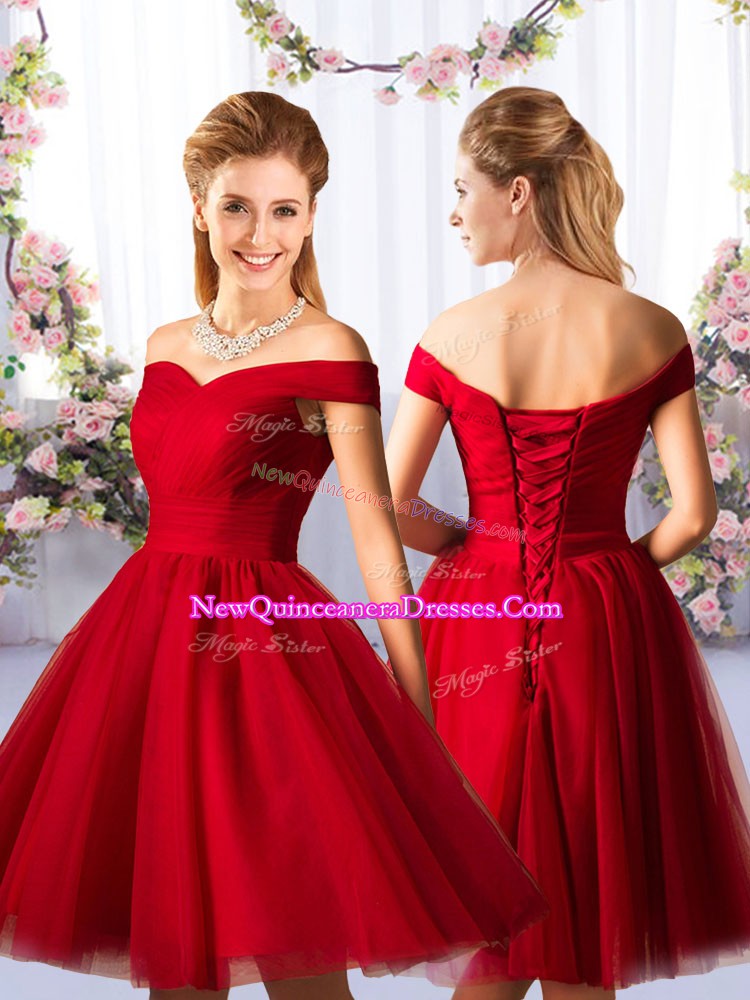 Sleeveless Knee Length Ruching Lace Up Dama Dress with Red