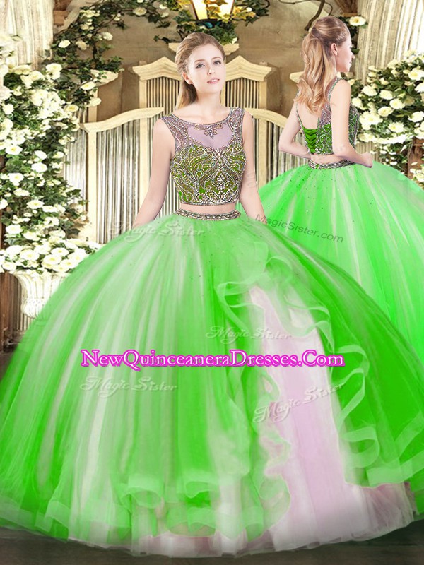 Smart Two Pieces Sweet 16 Dress Scoop Tulle Sleeveless Floor Length Lace Up