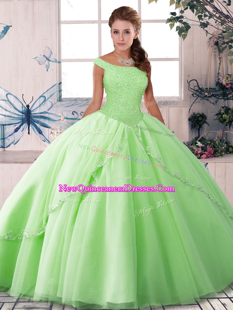 Sophisticated 15th Birthday Dress Tulle Brush Train Sleeveless Beading