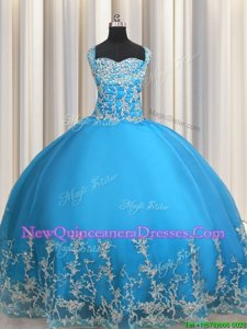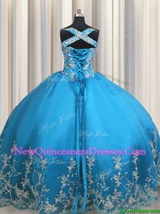 Sophisticated Floor Length Baby Blue Sweet 16 Dresses Sweetheart Sleeveless Lace Up