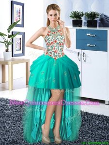 Sophisticated Four Piece Pick Ups Floor Length Turquoise Sweet 16 Dresses Halter Top Sleeveless Lace Up