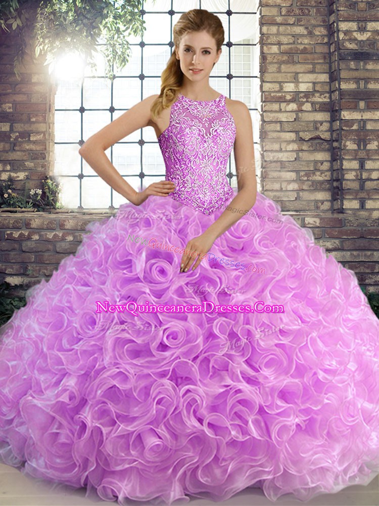 Sophisticated Lilac Sleeveless Floor Length Beading Lace Up Sweet 16 Dresses