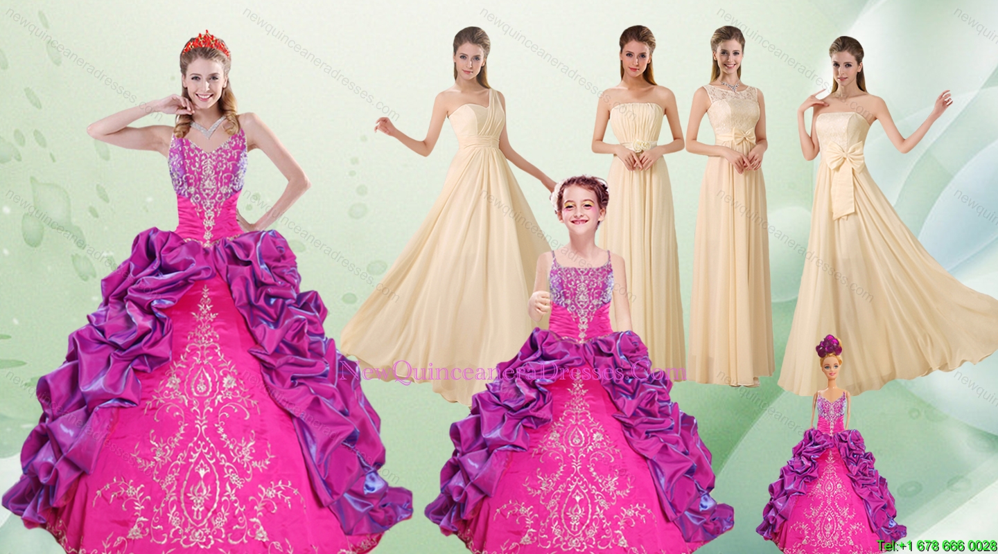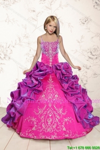 Spaghetti Straps Multi Color Quinceanera Dress and Long Ruching Dama Dresses and Ruffles and Embroidery Little Girl Dress