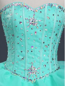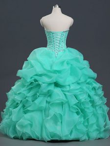 Spectacular Apple Green Lace Up Quinceanera Dresses Beading and Ruffles and Pick Ups Sleeveless Floor Length
