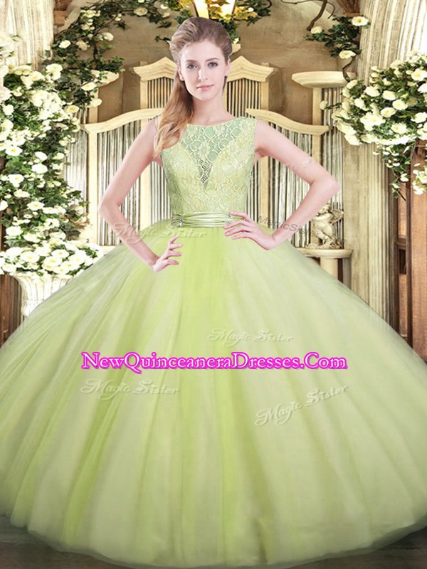 Spectacular Lace Sweet 16 Dress Yellow Green Backless Sleeveless Floor Length