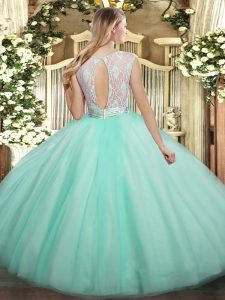 Tulle Sleeveless Floor Length 15th Birthday Dress and Beading and Ruffles