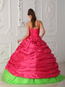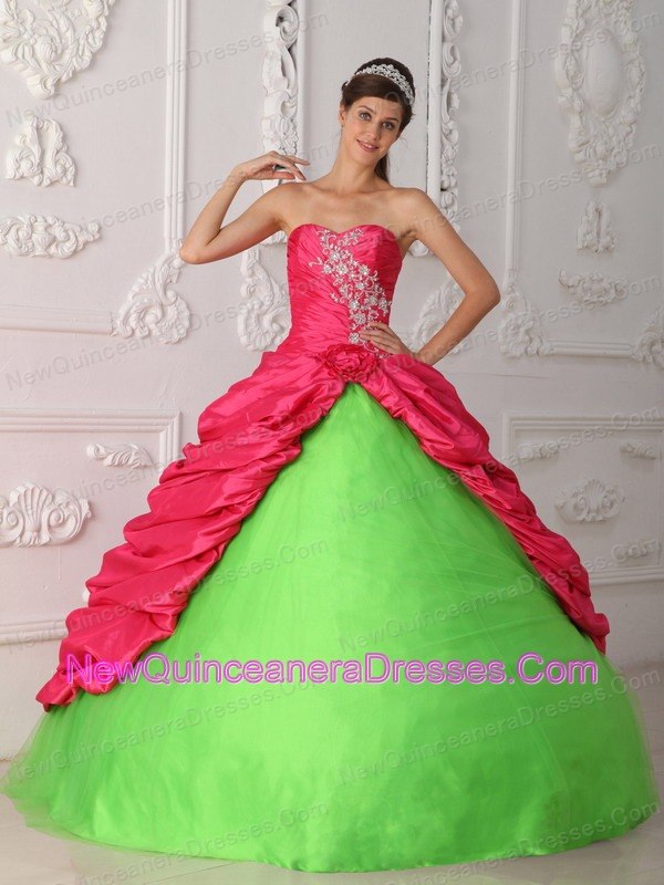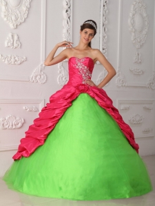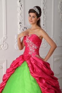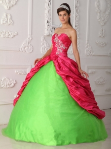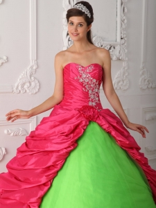 Cute Spring Green and Hot Pink Quinceanera Dress Sweetheart Taffeta Appliques and Ruch Ball Gown