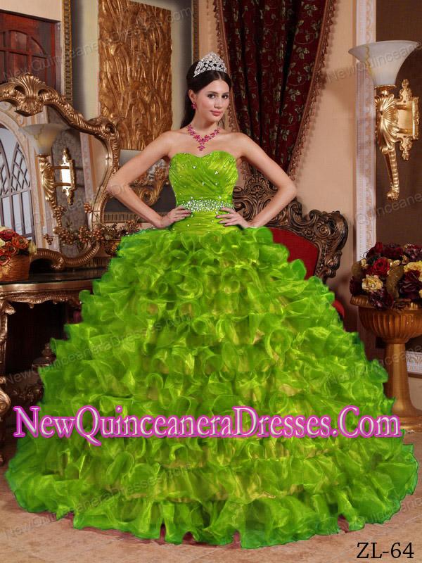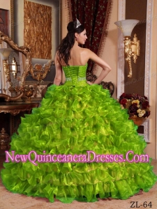 Cheap Quinceanera Dress In Apple Green Ball Gown Sweetheart Organza Beading
