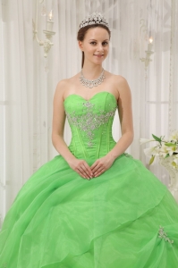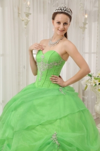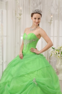 Brand New Spring Green Quinceanera Dress Sweetheart Organza Appliques Ball Gown