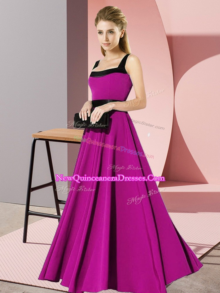 Square Sleeveless Zipper Court Dresses for Sweet 16 Fuchsia Chiffon