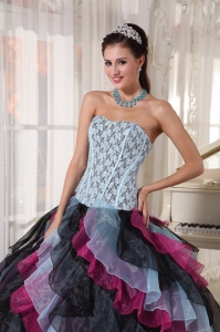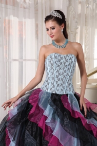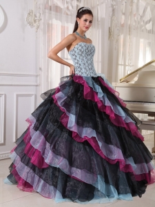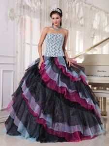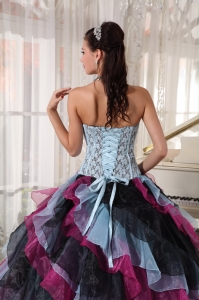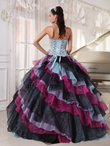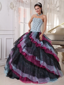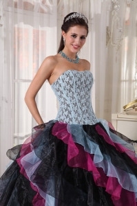 Beautiful Multi-color Quinceanera Dress Strapless Organza Appliques With Beading Ball Gown
