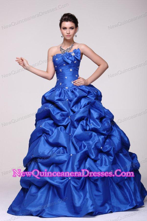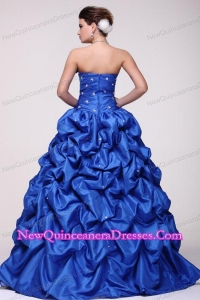 Strapless Beading and Pick-ups Taffeta Quinceanera Dress in Blue