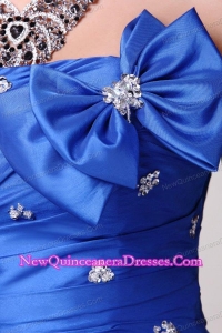 famous dresses for a quince with blue taffeta bowknot,