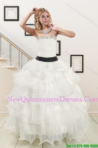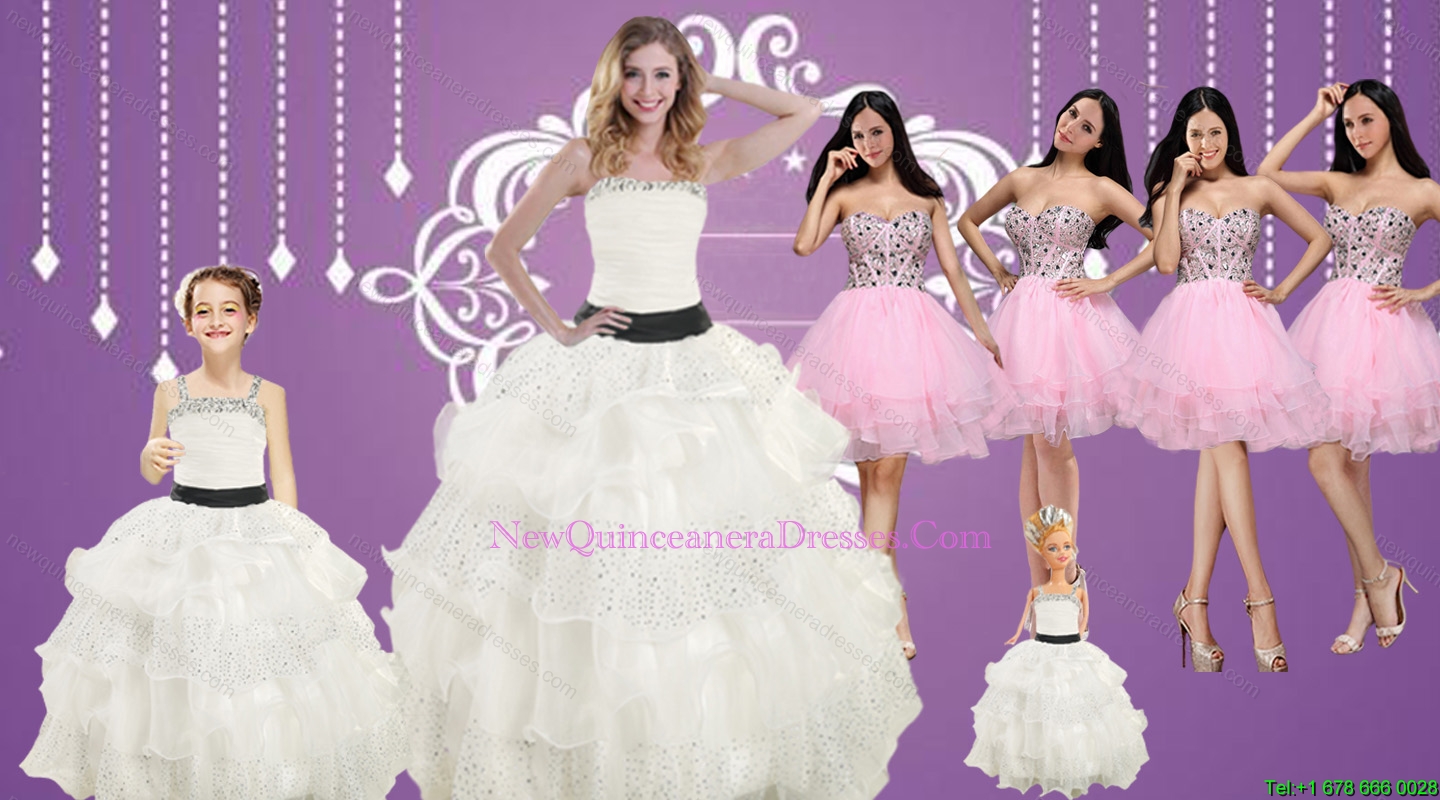 Strapless Beading White Quinceanera Dress and Baby Pink Sweetheart Short Prom Dresses and White Straps Beading Little Girl Pageant Dress