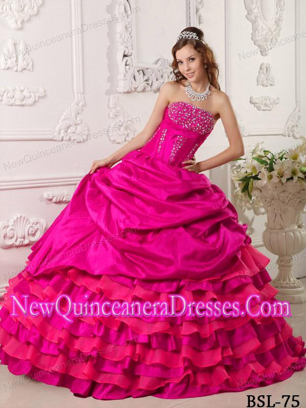 Hot Pink With Sweetheart Floor-length Beading Cheap Quinceanera Gowns
