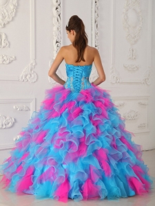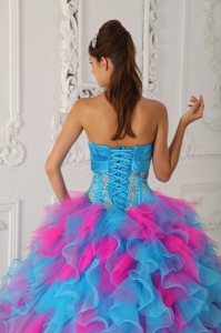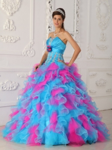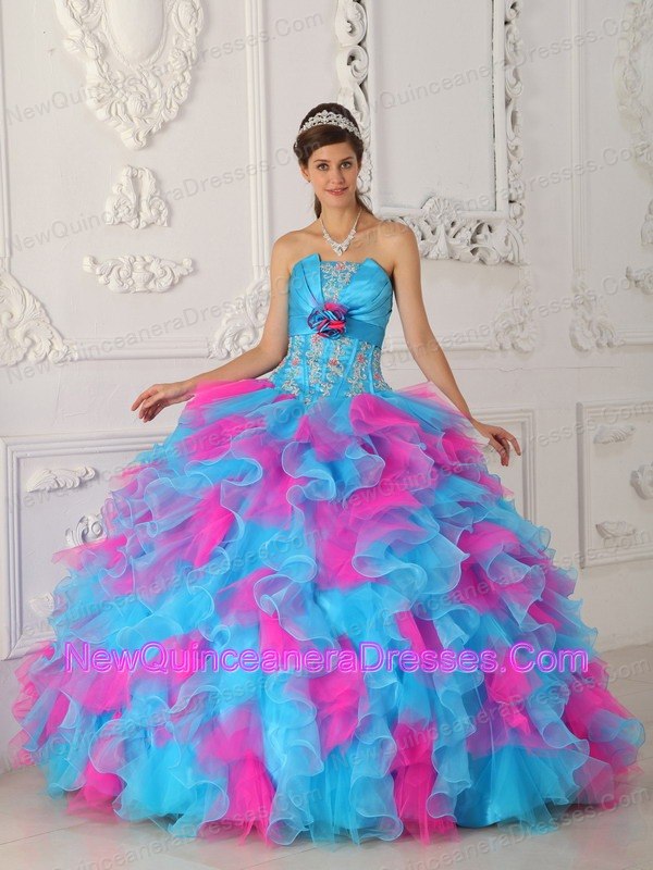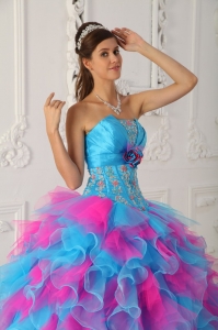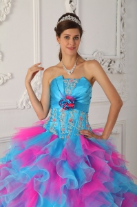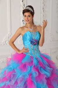 Sweet Multi-color Quinceanera Dress Strapless Organza Appliques and Hand Flower Ball Gown