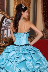 Popular Teal Quinceanera Dress Strapless Taffeta Appliques and Pick-ups Ball Gown
