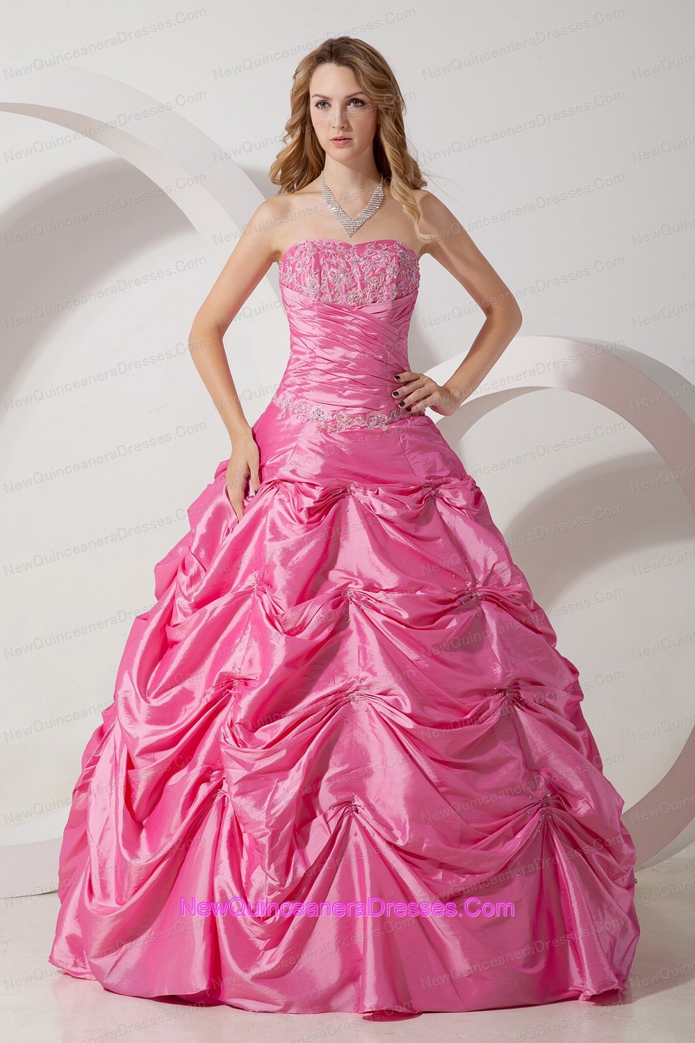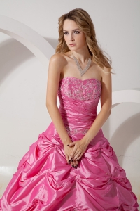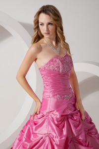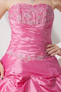 Rose Pink A-line Strapless Appliques Quinceanera Dress Floor-length Taffeta
