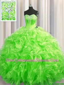 Stunning Spring Green Ball Gowns Beading and Ruffles Vestidos de Quinceanera Lace Up Organza Sleeveless
