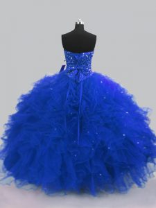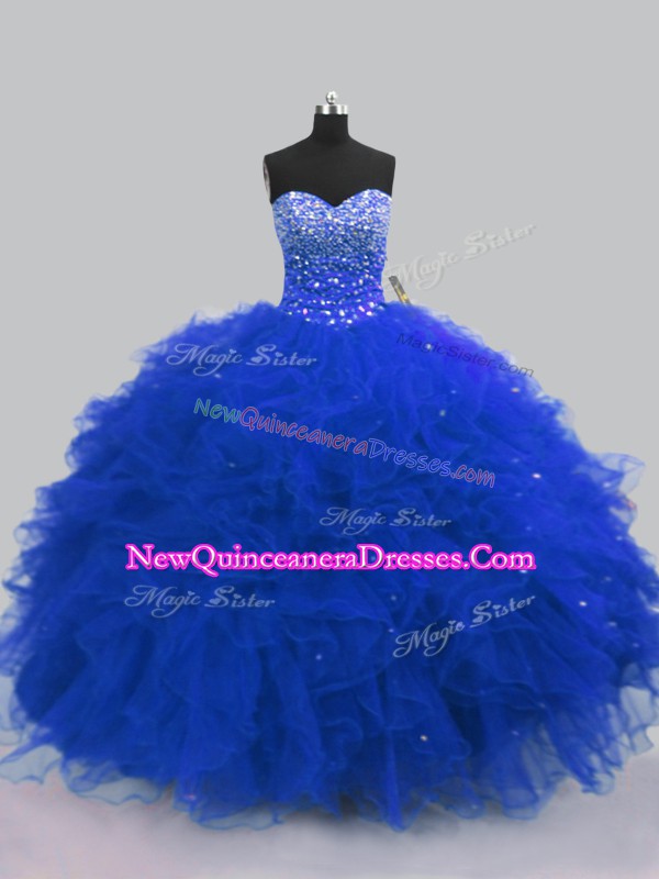 Stylish Beading and Ruffles Quinceanera Gown Royal Blue Lace Up Sleeveless Floor Length